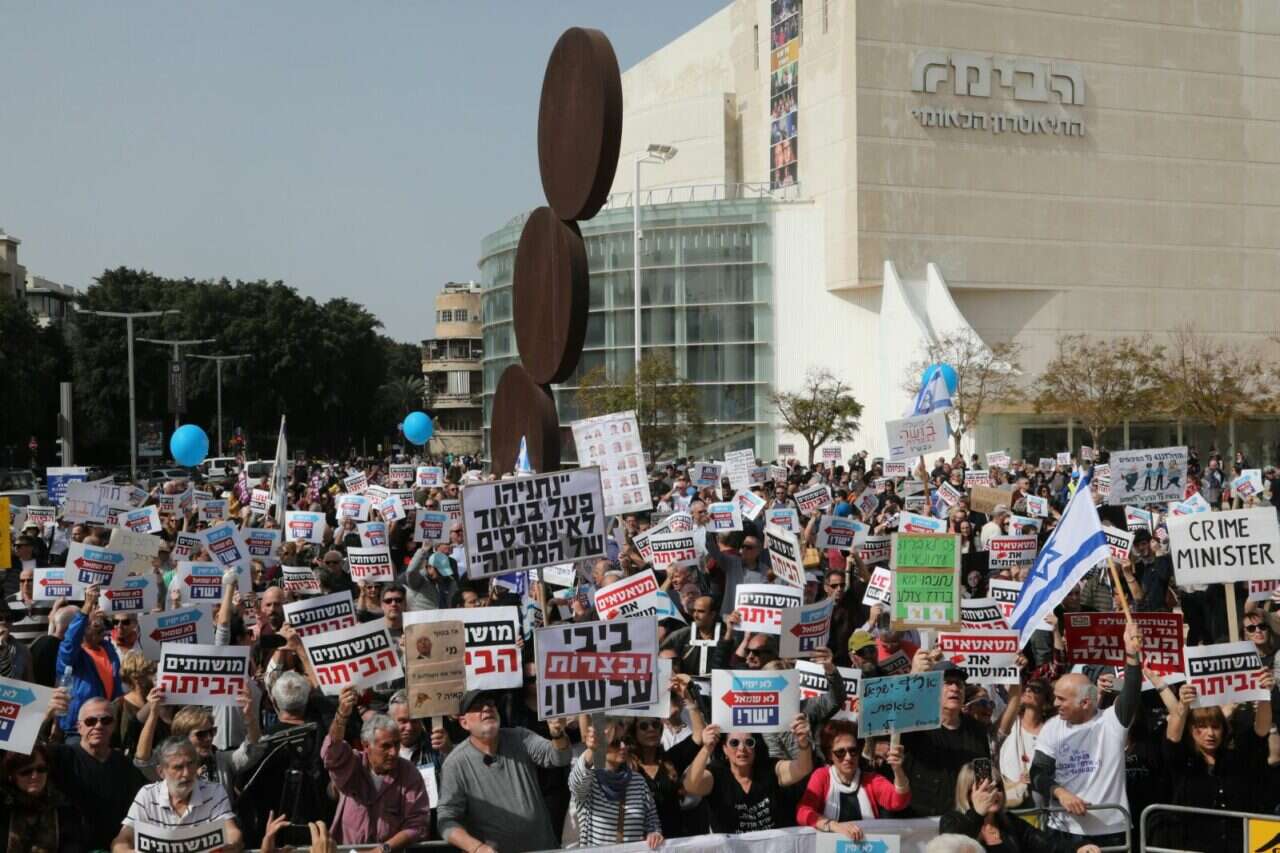 כמה מאות בני אדם הגיעו היום (שישי) לכיכר הבימה בתל אביב, למחאה נגד מה שכינו "השחיתות השלטונית", זאת על רקע הגשת המלצות המשטרה נגד ראש הממשלה בנימין נתניהו בחשד לקבלת שוחד.