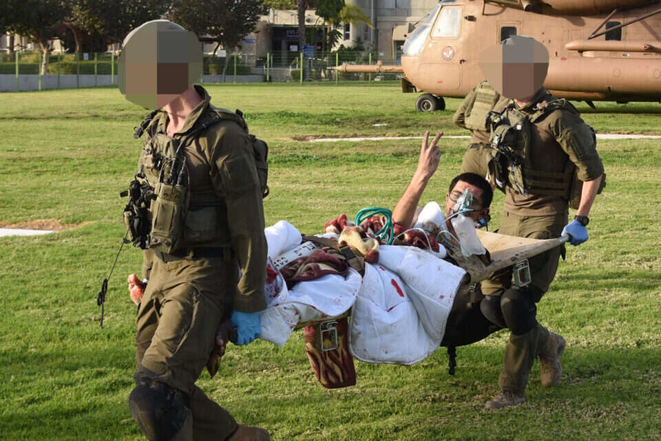 כאשר הורד מהמסוק סימן באצבעותיו "וי" - סמל הניצחון, בתמונתו ריגש אתמול מדינה שלמה.