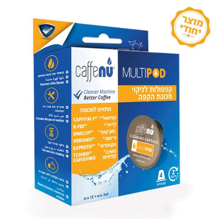 Caffenu היא למעשה מוצר חדשני המגיע בצורת קפסולת ניקוי המותאמת לכל סוגי מכונות הקפה של חברת נספרסו ושל אספרסו קלאב. קפסולת ניקוי זו פועלת בדומה לכל פעולת “הזרקה” אחרת של קפסולות הקפה השונות בהן אתם עושים שימוש לצורכי הכנת הקפה האהוב עליכם, רק שבמקום פעולת הכנה היא מקיימת עבורכם פעולת ניקוי יסודית של חלקי המכונה מבפנים והיא מסייעת בין היתר להסרת הלכלוך המצטבר לאורך זמן בפיית המזיגה והסרת סימני לכלוך ושומן בפיית המזיגה. פעולת הניקוי המשולבת של קפסולת Caffenu מבטיחה גם לכם שמירה על איכות וטעם הקפה האישי האהוב עליכם לאורך זמן ועל שמירת איכויות המכונה בלי קשר לתדירות והיקף השימוש בה.