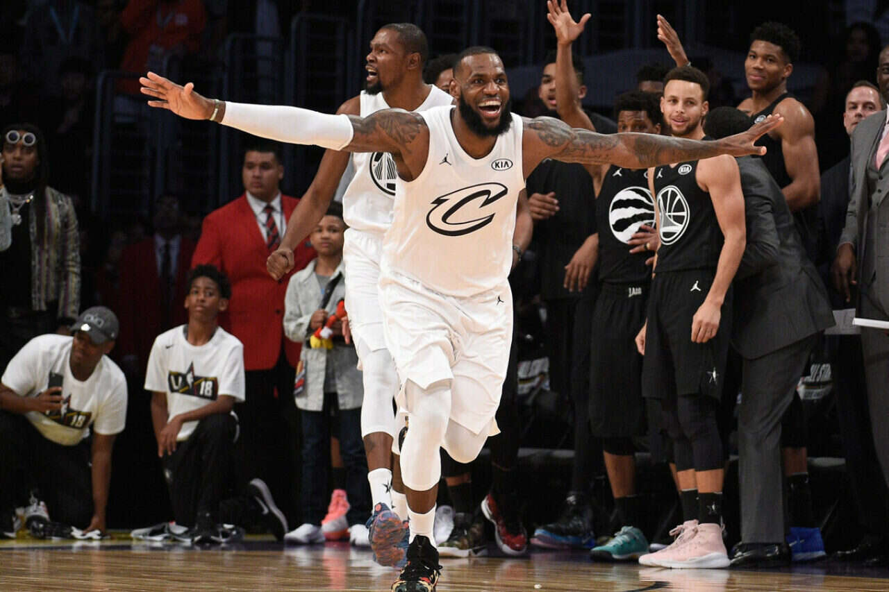 טים לברון - טים קרי 145:148. באמצע העונה הסדירה, בה גולדן סטייט וסטף קרי נהנים כמעט מכל רגע, קליבלנד של לברון ג'יימס סובלת, מסתבכת ובעיקר לא מוצאת את עצמה. הלילה, בגרסה החדשה של משחק האול סטאר, קינג ג'יימס חזר לחייך, כשקבוצתו השלימה קאמבק, והוא נבחר ל-MVP של המשחק.