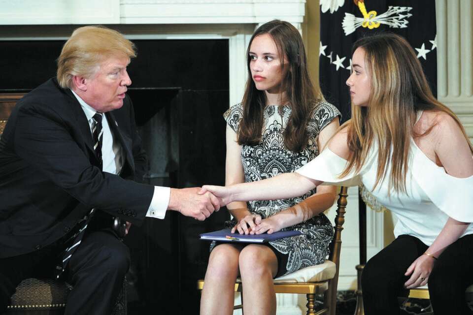 טראמפ והתלמידים // צילום: AFP