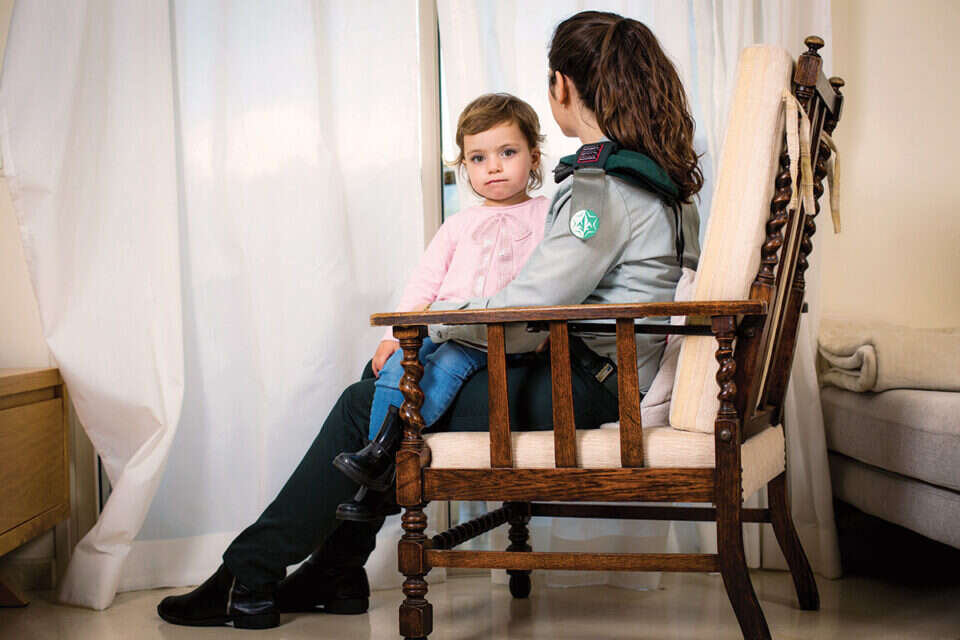 נגה מגיעה הביתה מבית סבתה, אמה של ט', שגרה בבניין סמוך. ט' מקבלת את פניה בחיבוק ארוך. "היא גדלה מיום ליום, וזה מגיע גם עם השאלות הקשות. היא שואלת 'איפה אבא שלי?' ואני עונה לה שבשמיים.