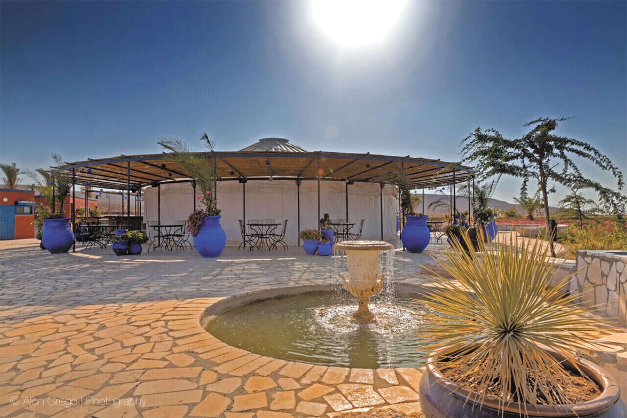 "העיצוב הוא מאוד אסתטי, צבעוני ושמח - שילוב צבעים עם המקום. רציתי לעצב מקום שלא ירגישו בו כמו במוסד, מקום שצבע של חיים וחיות עוטף אותו". מריומה מחייכת וממשיכה: "היה לי חשוב מאוד להכניס מים כחלק מהעיצוב כי מים מסמלים חיים, במיוחד במדבר שהיה כולו אדמת לס ואבנים. בכל מקום בכפר יש מים".