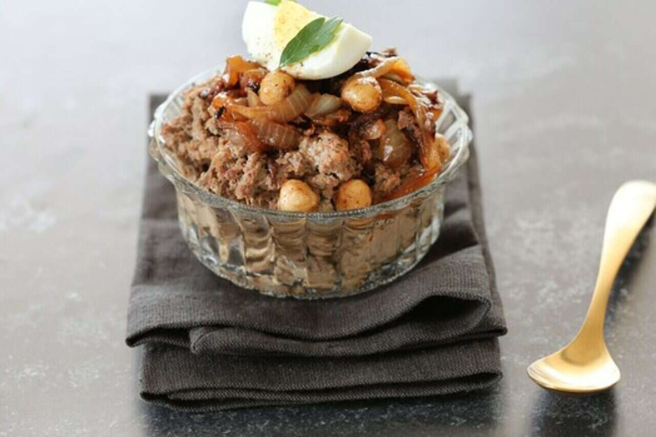 כבד קצוץ עם בצל מטוגן ואגוזים