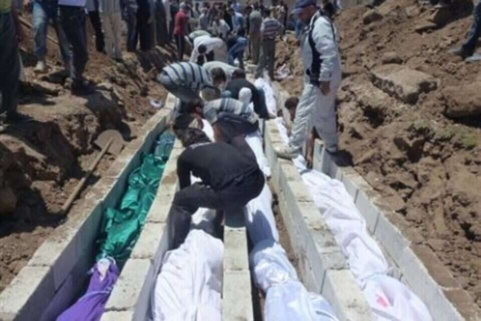 The reported massacre of men, women and children by Syrian President Bashar al-Assads forces in the small town of Houla, near Homs, on Friday may end up becoming a turning point in the 14-month struggle against Assad and his regime. The incident may have sealed Assad's fate and shortened his rule of a country now on the brink of a bloody civil war. According to reports by U.N. observers, who as part of an Arab League initiative to solve the crisis were visiting the area at the time, the massacre began after the traditional Friday prayers, as residents left mosques in the village. Syrian forces shelled the residents using artillery, resulting in the deaths of at least 116 people a third of whom were reported to be children and injuring 300 others. Witnesses claimed that after the bombardment, soldiers and Shabiha gangs (legions of thugs loyal to the regime) gunned down men in the streets and murdered entire families in their homes. Images uploaded to the Internet showed bodies of children with bullet holes in their heads. A video released by the U.N. team in Syria on Sunday showed observers in Houla the day after the attack, meeting with local rebels and watching residents collect more bodies for burial. It also showed two destroyed armored personnel carriers, suggesting that local rebels put up more of a fight than officially acknowledged. "Many women and children were killed. We saw mothers who tried to protect their children and died together with them," a witness told the Al Arabiya news agency. "Where is the U.N., where is the world which must stop this massacre-" U.N. observers were in fact not far from where the incident occurred. Gen. Robert Mood, the head of the unarmed U.N. observer mission, visited Houla before the incident on Friday and warned that the situation could get out of control. After the massacre, Mood said, "Those behind these horrific attacks must be held responsible. U.N. observers who visited Houla counted 49 children and 34 women among the dead. The violence is destabilizing Syria and the country is on the threshold of civil war." The Syrian government rejected that narrative Sunday, painting a vastly different picture. Speaking to reporters in Damascus, Foreign Ministry spokesman Jihad Makdissi said Syrian security forces were in their local bases Friday when they were attacked by "hundreds of heavily armed gunmen" firing mortars, heavy machine guns and anti-tank missiles, staring a nine-hour battle that killed three soldiers and wounded 16. The soldiers fought back, but did not leave their bases, he said. "No Syrian tank or artillery entered this place where the massacres were committed," he said. "The security forces did not leave their places because they were in a state of self-defense." He blamed the gunmen for what he called a "terrorist massacre" in Houla and accused the media, Western officials and others of spinning a "tsunami of lies" to justify foreign intervention in Syria. Makdissi did not provide videos or other evidence to support his version of events, nor did he give a death toll. He said the government had formed a committee to investigate and share its findings with U.N. and Arab League envoy Kofi Annan, who is due to visit Damascus in coming days. Syria's state news agency, SANA, claimed that al-Qaida terrorists were responsible for the deaths of the citizens. Anti-regime activists scoffed at the government's version of events. One Houla activist said via Skype that the area had at most 300 fighters, that none had more than rifles and that they often lacked ammunition. "If we had anti-tank missiles, there would be no tanks left in the area," said Mohammed, declining to give his full name for fear of retribution. Activists reported shelling, gunfire and arrest raids in opposition areas throughout the country Sunday as well as clashes between regime forces and rebels in a number of areas. The Britain-based Syrian Observatory for Human Rights said security forces killed at least 14 civilians, while rebels killed nine soldiers. Activist claims could not be independently verified. The Syrian government bars most media from operating in the country. Britains Channel 4 is scheduled to air a program on Monday on an investigation it conducted which yielded evidence of the involvement of Assad's family in the massacres. Among other findings, the program will report that Assad's cousin instructed government troops to "shoot to kill" citizens who demonstrated in the city of Dara. Assad's brother was reportedly present when the order was given. The killings brought widespread international criticism of Assad and his regime, although differences emerged from world powers over whether his forces were exclusively to blame. The Security Council issued a press statement Sunday that condemned in the strongest possible terms" the killings in Houla. It blamed Syrian forces for artillery and tank shelling of residential areas. It also condemned the killings of civilians "by shooting at close range and by severe physical abuse," but avoided saying who was responsible for the attacks. The council's statement said the "outrageous use of force" against civilians violated international law and Syrian government commitments under previous U.N. resolutions to stop all violence, including the use of heavy weapons in populated areas. It said "those responsible for acts of violence must be held accountable," and asked the U.N. observer mission in Syria and Secretary-General Ban Ki-moon to investigate the attacks and report back to the council. Britain and France had proposed issuing a press statement condemning the attack on civilians and pointing the finger at the Syrian government for Friday's massacre. But Russia called for an emergency council meeting saying it first wanted a briefing by Mood. The massacre in Houla on Friday cast fresh doubts on the ability of the international peace plan put forward by Annan to end the crisis. In a letter to the Security Council, Ban 