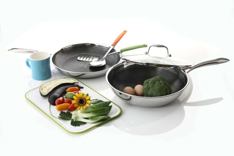 הפתרון לאתגרי הציפוי מגיע דווקא מדרום קוריאה, שם פיתחו לאחרונה את כיפת ברזל של המחבתות: מחבת נירוסטה היברידית שמצד אחד מאפשרת לכם ליהנות מכל יתרונות הנירוסטה (כגון עמידות גבוהה ומראה מבריק), ומצד שני ממערכת הגנה חדשנית שעוטפת את ציפוי הנון סטיק, והופכת אותו לעמיד במיוחד.