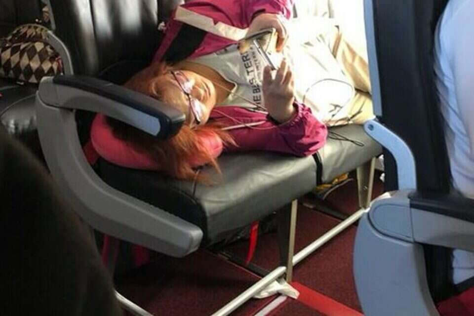 גם זו דרך לנסות לשדרג את המושב שלך במטוס: אישה מבוגרת שקנתה לעצמה מושב רגיל בטיסה של אייר אסייה מקואלה למפור להונג-קונג החליטה לשדרג לעצמה את מקום הטיסה ולעבור לכסאות האדומים של מחלקת העסקים שמרווחים יותר והמרחק ביניהם גדול יותר.