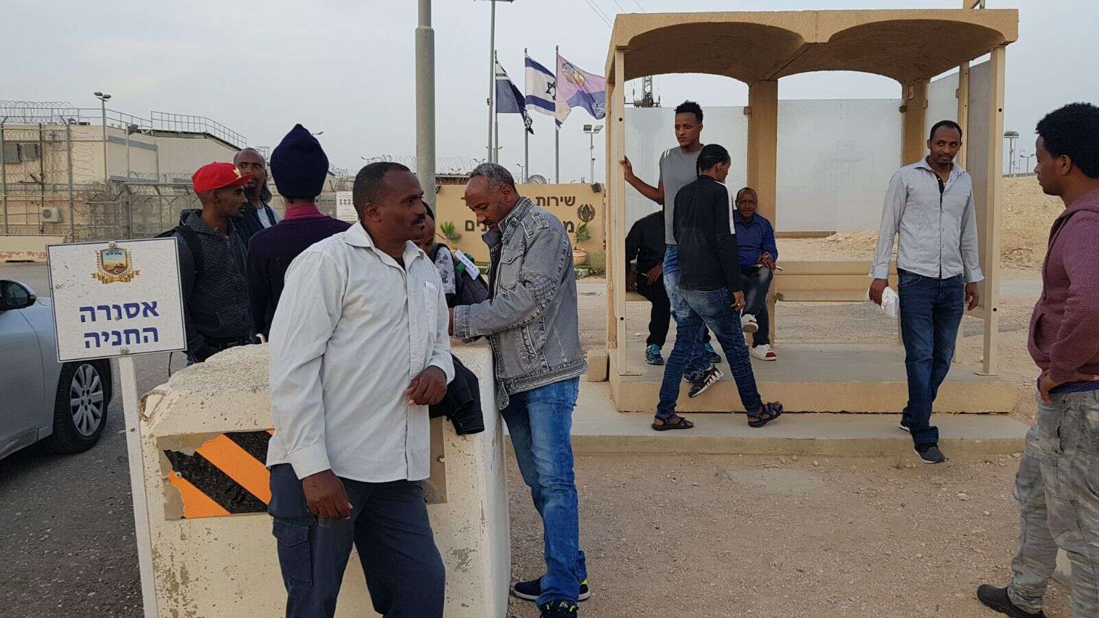 חלק מהמסתננים ששוחררו היום ממתקן הכליאה סהרונים // צילום: דודו גרינשפן