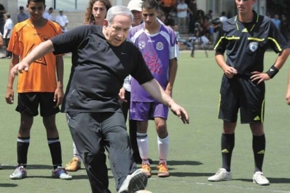 Prime Minister Benjamin Netanyahu experienced a few uncomfortable moments on Monday after tearing a tendon in his left foot while playing soccer with Arab and Jewish youths in Jerusalem. The prime minister underwent a CT scan and had already returned to work on Tuesday, albeit in a cast that he will need to wear for several weeks. Netanyahu played in the game as part of an international project promoting Israeli tourism. His office noted that during the game Netanyahu "slipped on the grass, got up, continued to play and scored a goal." After feeling the pain in his left foot shortly thereafter, his bodyguards whisked him away for medical tests at Jerusalem's Hadassah University Hospital at Mount Scopus. The soccer game was being filmed for the American travel show, "The Royal Tour," where heads of state present their country's major tourist sites. During the filming session on Monday, before his injury, Netanyahu had visited the City of David in Jerusalem's Old City and the Mount of Olives. Now, however, it appears that the project is in jeopardy of shutting down. Netanyahu was scheduled to climb Massada with the show and it's still not clear if his doctor will permit him to do so. Netanyahu's office also posted a video to You Tube in which the prime minister, on his patio at home and in a cast, explained how he was injured and reassured the Israeli public that "[On Tuesday] I will return to my office and I will continue to play in other fields for the State of Israel."