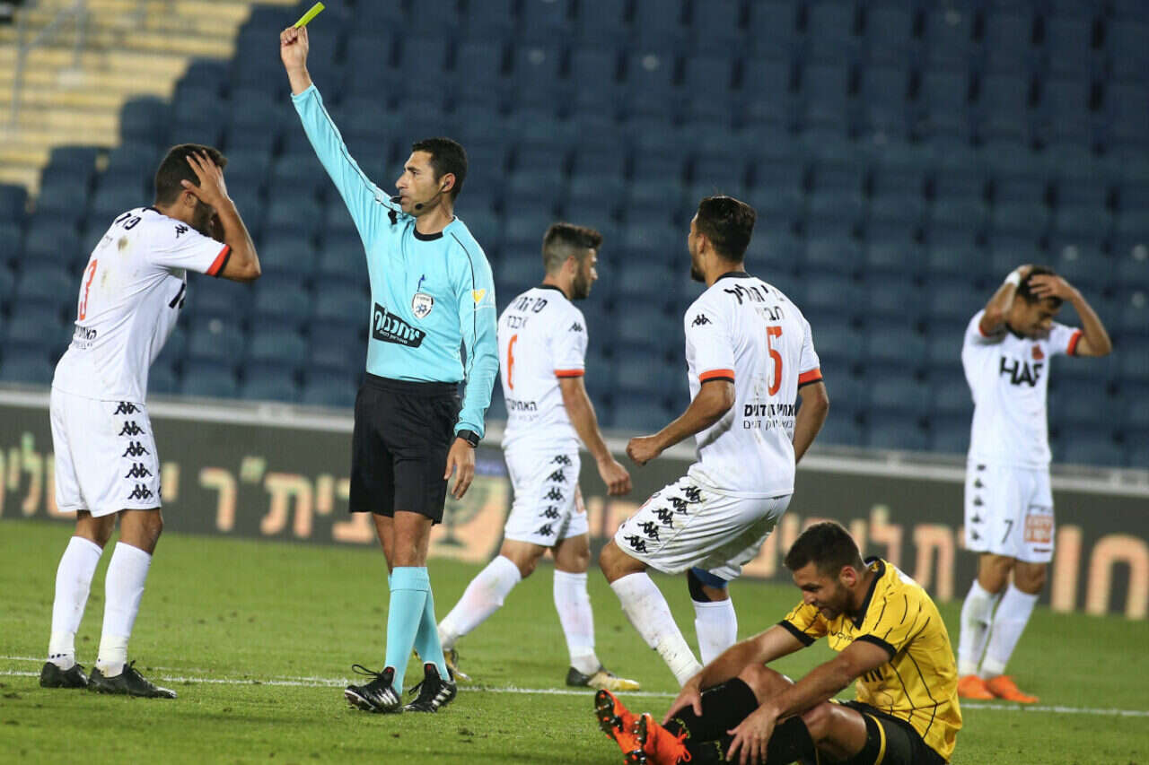 92': פנדל לבית"ר ירושלים: עזרא הכניס כדור לשכטר שזרק את עצמו ברחבה, בלי שקנדיל נגע בו