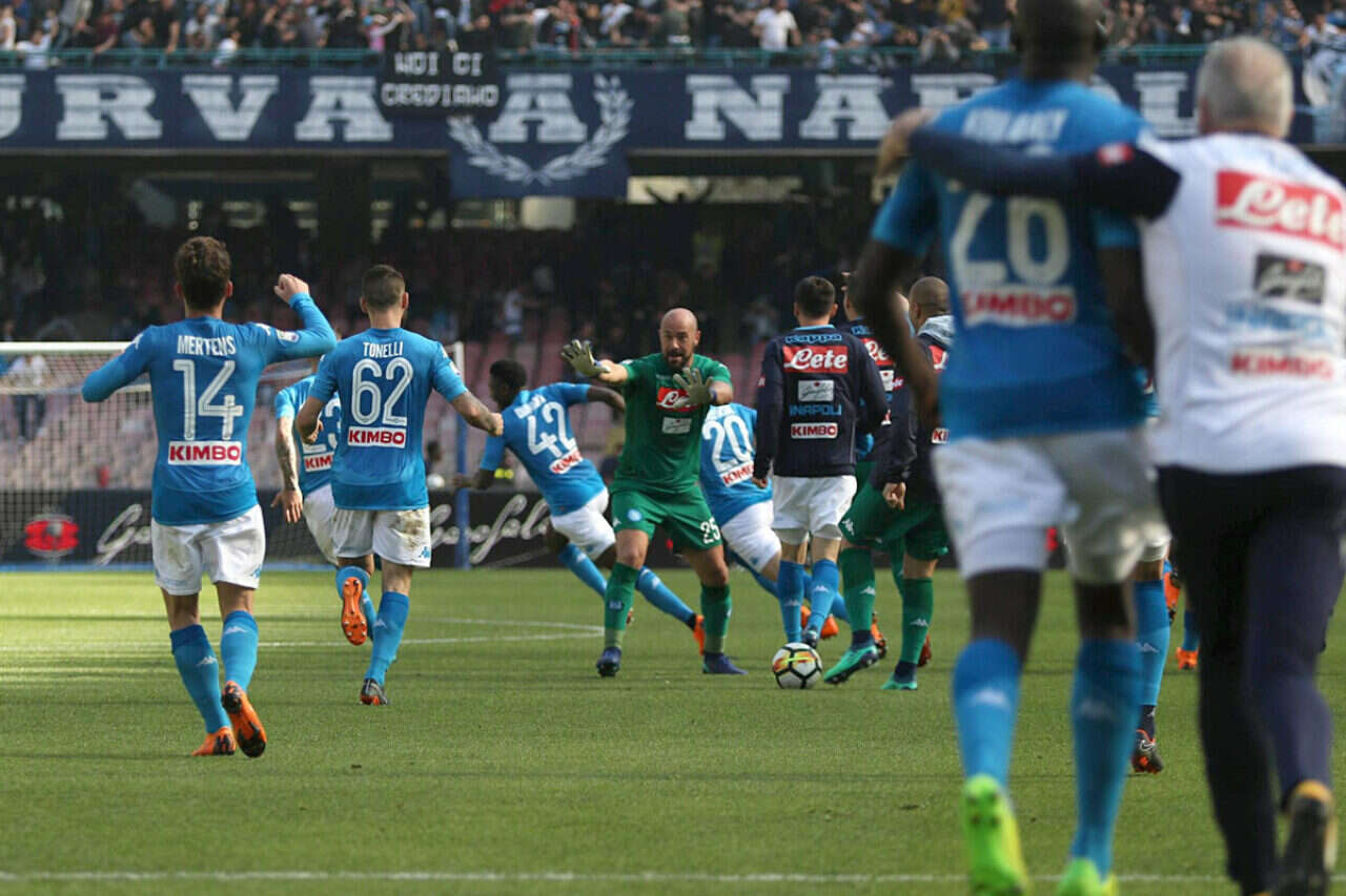 נאפולי הייתה הערב (ראשון) במרחק ארבע דקות מאיבוד הסיכוי לאליפות, אך היא חזרה מפיגור 0:1 מול קייבו לניצחון 1:2 ושמרה על פער ארבע הנקודות מיובנטוס.
