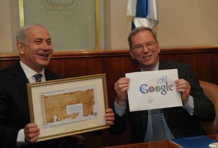 Google CEO Eric E. Schmidt showered Israel with praise on Tuesday during a meeting with Prime Minister Benjamin Netanyahu in Jerusalem. Schmidt told Netanyahu, "The decision to invest in Israel was one of the best that Google has ever made." During the special meeting, Netanyahu gave Schmidt a doodle he had drawn based on suggestions he was sent from Israeli web surfers. According to a statement from the Prime Minister's Office, the doodle shows an Israeli flag, a man sitting under an umbrella in the sun and the crystals discovered by Prof. Dan Shechtman, the Israeli who won year's Nobel Prize in Chemistry. The drawing is meant as a symbol, "of Israel's standing at the forefront of science and technology," the statement said. Netanyahu told Schmidt, "This is Israel science, sun and Google." Schmidt told Netanyahu that he is the first leader in the world to have drawn him a Google doodle. In return, Schmidt gave Netanyahu a framed picture of the Isaiah Scroll, a symbol of the Dead Sea Scrolls project Google is spearheading together with the Israel Museum. The scrolls will be posted on the Internet as part of a Google project to promote historical preservation and heritage online. Schmidt noted that even though this was his first visit to Israel, he views it as a start-up nation and believes the fact that Israeli citizens are drafted into the army gives them a great advantage as high-tech workers, the statement said. The Google CEO said he views Israeli high-tech workers as, "more mature, independent and organized in comparison to other workers," and added that their ability to maneuver within a competitive environment has contributed to their many achievements. "We appreciate that Israeli engineers, whose quality is very high, are developing things here that are being used all over the world," Schmidt told Netanyahu. During the meeting, the two leaders also discussed cooperation between Israel and Google in the fields of medicine, science and defense against cyberattacks, as well as, "alternatives to oil that could render certain regimes less relevant," the official statement said, apparently hinting at the world's reliance on Iranian oil. The prime minister concluded by telling Schmidt, "The more science penetrates to more places, the world will be a better place. We would like to see the Internet reaching places that restrict access and your contribution on this issue is phenomenal."