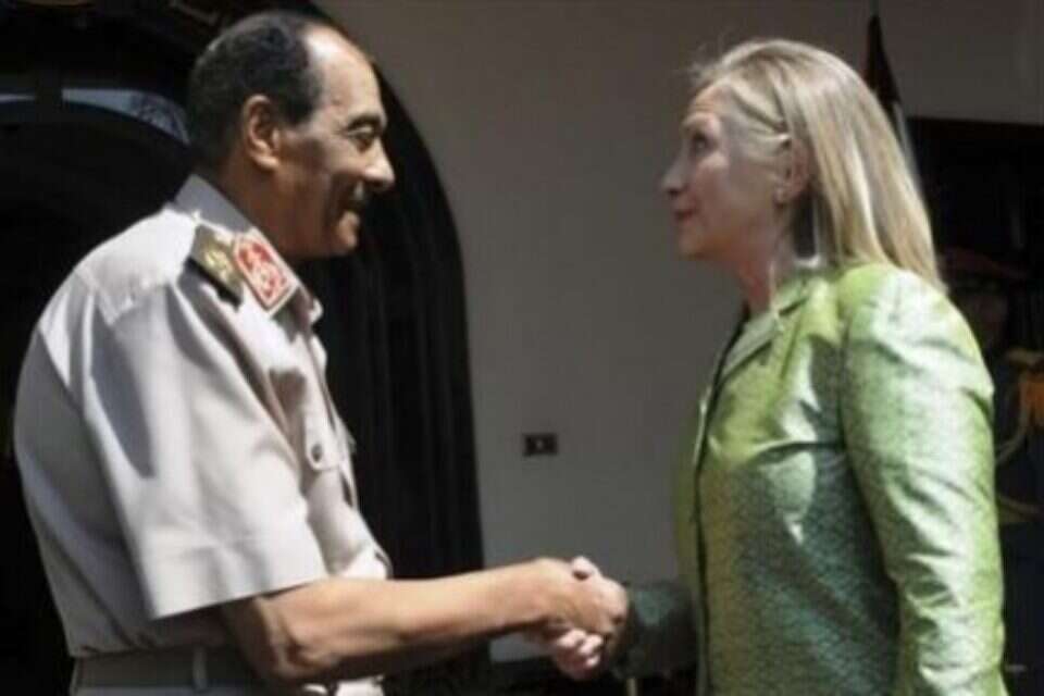 Protesters threw tomatoes and shoes at U.S. Secretary of State Hillary Clinton's motorcade on Sunday during her first visit to Egypt since the election of Islamist President Mohammed Morsi. A tomato struck an Egyptian official in the face, and shoes and a water bottle landed near the armored cars carrying Clinton's delegation in the port city of Alexandria after she gave a speech on democratic rights. A senior U.S. official said neither Clinton nor her vehicle, which was around the corner from the incident, was hit by the projectiles, which were thrown as U.S. officials and reporters walked to the motorcade after her speech. Protesters chanted "Monica, Monica," a reference to the extra-marital affair conducted by Clinton's husband, former President Bill Clinton, while in the White House. Others earlier chanted, "Leave, Clinton," an Egyptian security official said. It was not clear who the protesters were or what their political affiliations were. Demonstrations have become common in Egypt since former President Hosni Mubarak, long-time U.S. ally, was brought down by mass street protests last year. Egypt is gripped by political uncertainty as two major forces, the military and the Muslim Brotherhood, engage in a power struggle over the future of a country that remains without a permanent constitution, parliament or government. On Saturday night, protesters outside Clinton's luxury hotel in Cairo chanted anti-Islamist slogans, accusing the U.S. of backing the Muslim Brotherhood's rise to power. In her speech at the newly reopened U.S. consulate in Alexandria, Clinton rejected suggestions that the U.S., which had long supported Mubarak, was backing any faction in Egypt since his ousting. "I want to be clear that the United States is not in the business, in Egypt, of choosing winners and losers, even if we could, which of course we cannot," Clinton said. "We are prepared to work with you as you chart your course, as you establish your democracy. We want to stand for principles, for values, not for people or for parties." Earlier on Sunday, Clinton met Egypt's top general, Field Marshal Mohamed Hussein Tantawi, to discuss Egypt's turbulent democratic transition as the military wrestles for influence with the new president. The meeting came a day after she met Morsi, whose powers were clipped by the military days before he took office. Morsi fired back by reinstating the Islamist-dominated parliament that the army leadership had disbanded after a court declared it void, deepening the stand-off before the new leader even had time to form a government. In their hour-long meeting, Clinton and Tantawi discussed Egypt's political transition, the military's "ongoing dialogue with President Morsi," and the country's economic troubles, a U.S. official traveling with Clinton said in an email brief. "Tantawi stressed that this is what Egyptians need most now help getting the economy back on track," the official said. The talks also touched on the increasingly lawless Sinai region and the Israeli-Palestinian peace process. Clinton raised the possibility of launching an open dialogue between Morsi and Israel Prime Minister Benjamin Netanyahu and she was expected to deliver her assessments on the issue when she meets with Netanyahu in Israel this week. Speaking after the meeting with Clinton, Tantawi said the army respected the presidency but would not be deterred from its role of "protecting" Egypt. "The armed forces and the army council respects legislative and executive authorities," he said in a speech to troops in the city of Ismailia. "The armed forces would not allow anyone to discourage it from its role in protecting Egypt and its people." Ties with the U.S., which provides Egypt with an annual $1.3 billion in military aid, were strained this year when Egyptian judicial police raided the offices of several U.S.-backed non-governmental organizations on suspicion of illegal foreign funding, and put several Americans on trial. The spat ended when Egyptian authorities allowed the U.S. citizens and other foreign workers to leave the country. Clinton said Washington wanted to support "real democracy," in which "no group or faction or leader can impose their will, their ideology, their religion, their desires on anyone else." She delivered a similar message in earlier meetings with women and Christians. Both groups that fear their rights may be curtailed under a Muslim Brotherhood-dominated government. "I will be honest and say some have legitimate fears about their future," she said. "I said to them ... no Egyptian, no person anywhere, should be persecuted for their faith, or their lack of faith, for their choices about working and not working. Democracy is not just about reflecting the will of the majority. It is also about protecting the rights of the minority. Clinton said the U.S. had learned this "the hard way," and that the U.S. constitution originally did not protect the rights of women or slaves.