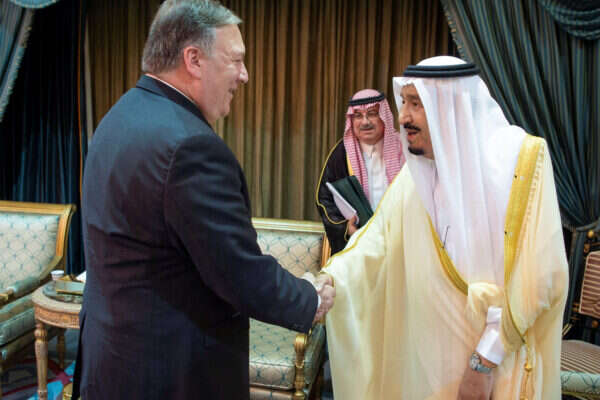 פומפאו נפגש היום (ראשון) עם המלך הסעודי סלמאן, שמדינתו יחד עם בחריין ועם איחוד האמירויות הערביות מסוכסכות עם קטאר. ראש ה-CIA לשעבר הגיע לריאד יום לאחר שמורדים חות'ים התומכים באיראן בתימן, ירו טילים לעבר העיר ג'זאן בדרום ערב הסעודית, והרגו אדם אחד.