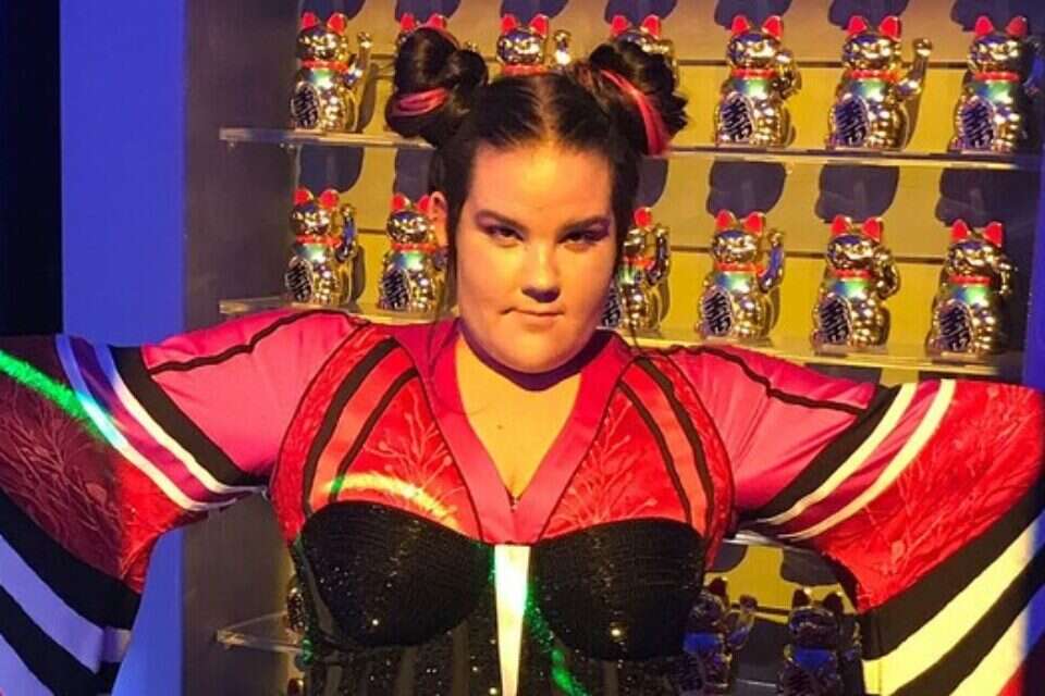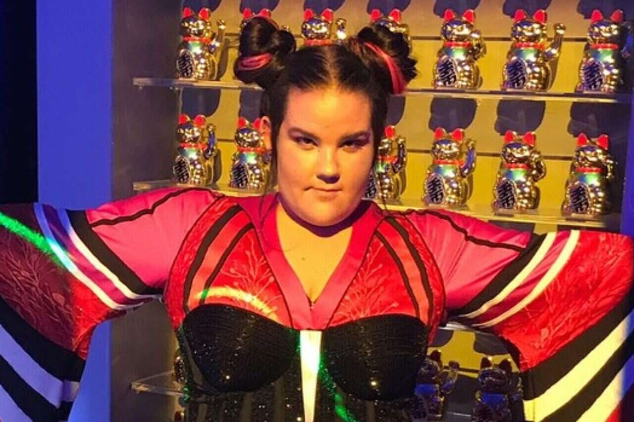האלמנט השני הוא קיר חתולי המזל היפניים (בתמונה). מדובר ב-112 חתולי מזל יפניים בצבע זהב, המסמלים הצלחה, שפע ומזל. הם ינפנפו מאחורי נטע במהלך כל השיר.