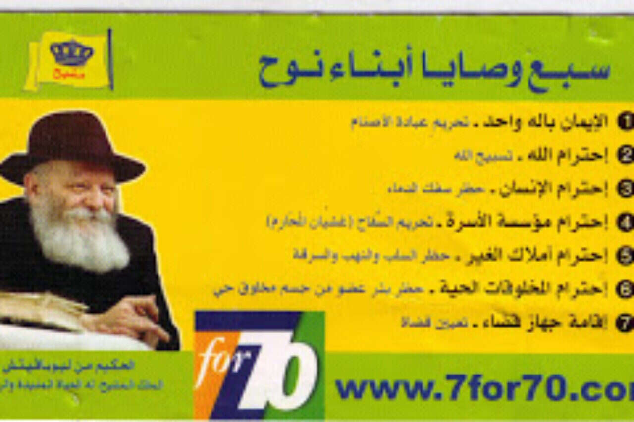 מדובר על אנשי הזרם המשיחיסטי של חב"ד, שעוסקים באופן אינטנסיבי בעידוד שבעת מצוות בני נוח. אנשי מטה "שבע מצוות לשבעים אומות" בחב"ד נוהגים לתלות את תמונתו המפורסמת של הרבי ברחבי הערים והכפרים הערביים, וכן מציעים ללמד מוסלמים על המצוות של בני נוח, שמכונים סבע וצאיא אבנא נוח בערבית. במודעות שנתלו  נכתב כי אם הם ישמרו אותן ויאמינו במשיח דיים כדי שיזכו לישועה.
