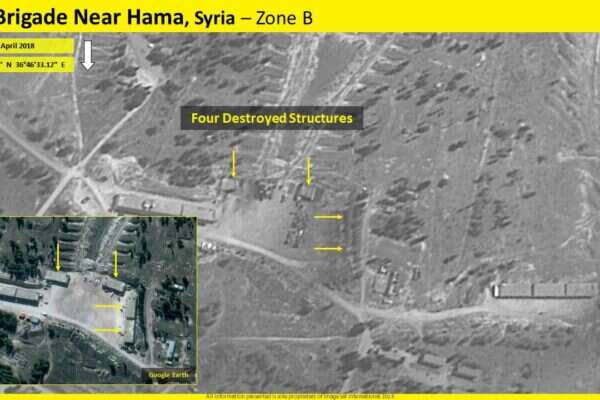 פענוח של הדמיות לוויין שצולמו היום (שני), מציג את בסיס חטיבה 47 בסוריה, שהופצץ אמש, כך לפי דיווחים בכלי התקשורת בעולם.