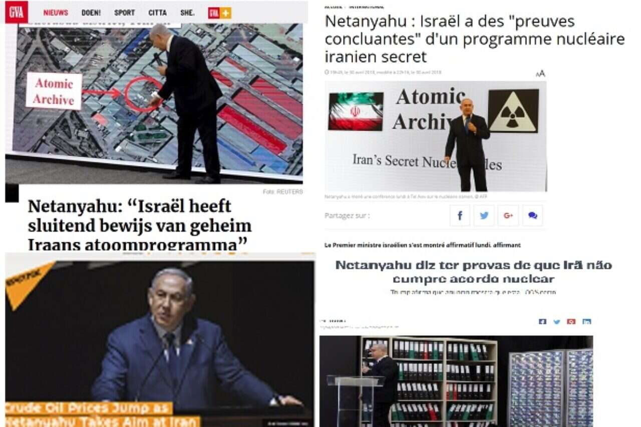 בעוד במרבית הרשתות והאתרים בארצות הברית דיווחו על הגילויים המודיעיניים של ישראל באופן מאוזן והבליטו גם את דבריו של מזכיר המדינה פומפאו ושל הנשיא טראמפ, שתמכו בנתניהו, הרי שאירופה ושאר העולם נחלקו בין סיקור עוין ומלגלג, לסיקור אוהד, כאשר רק מספר כלי תקשורת באירופה סיקרו את הנאום באופן מאוזן.
