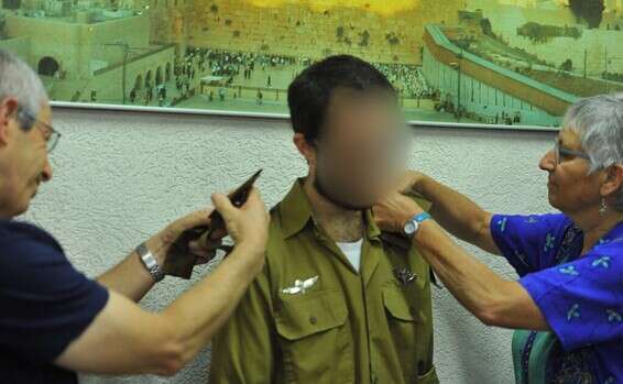 הקצין מקבל דרגות מהוריו// צילום: דובר צה"ל