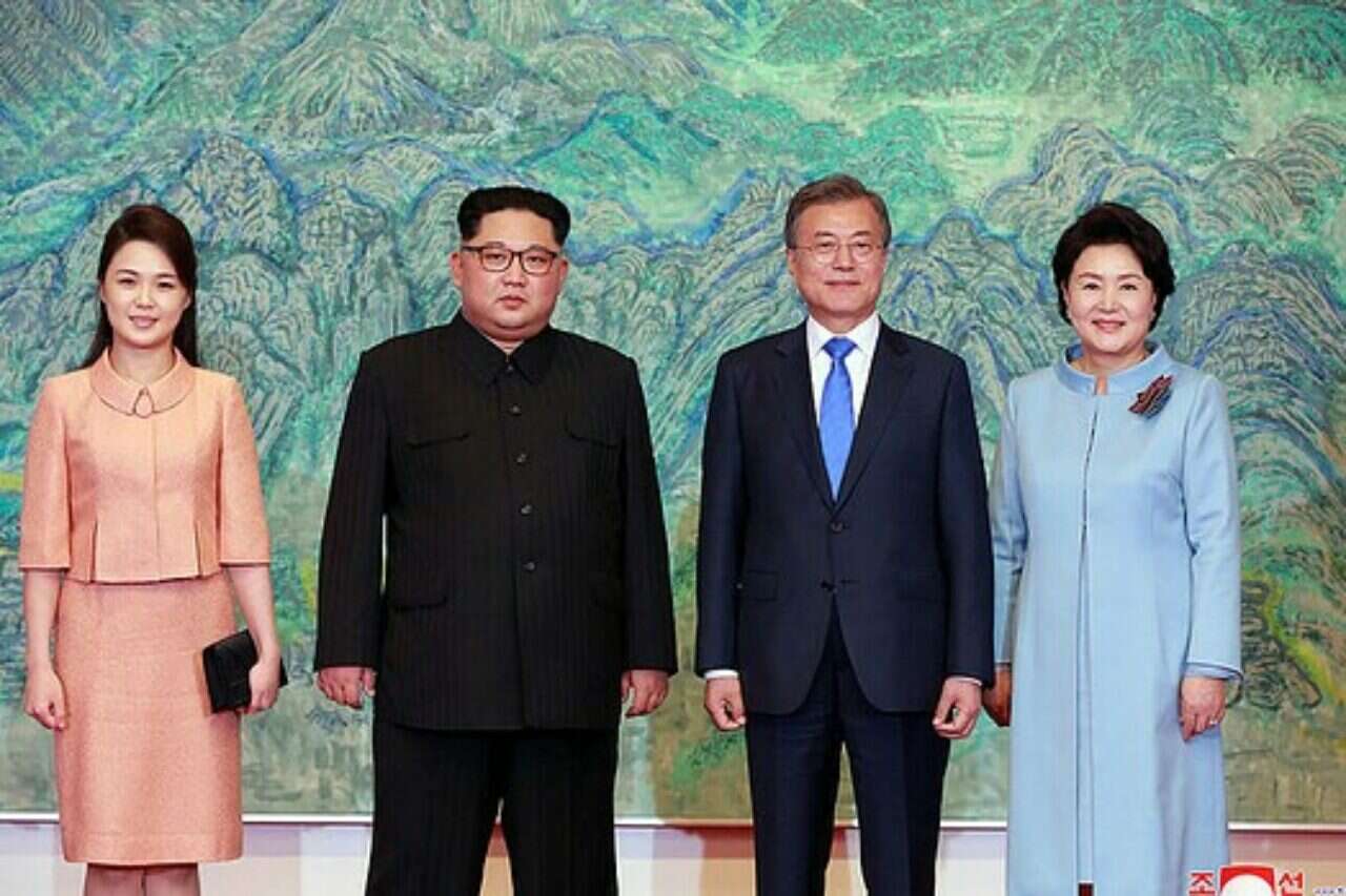 רי סול ג'ו, אשתו של הרודן בן ה -28, חצתה את הגבול באזור המפורז לשטח דרום קוריאה ביום שישי, כדי להשתתף בסעודה חגיגית עם הנשיא מון ואשתו קים ג'ונג-סוק. בטרם התיישבה לסעודה, היא שוחחה עם הגברת הראשונה של דרום קוריאה, במפגש הראשון ביניהן.