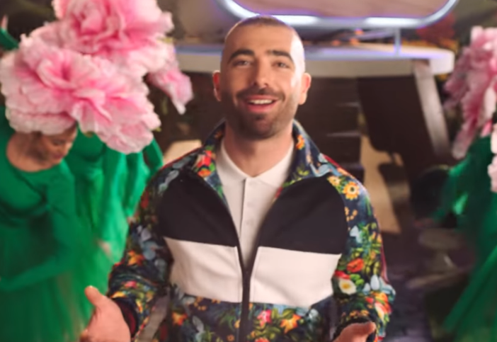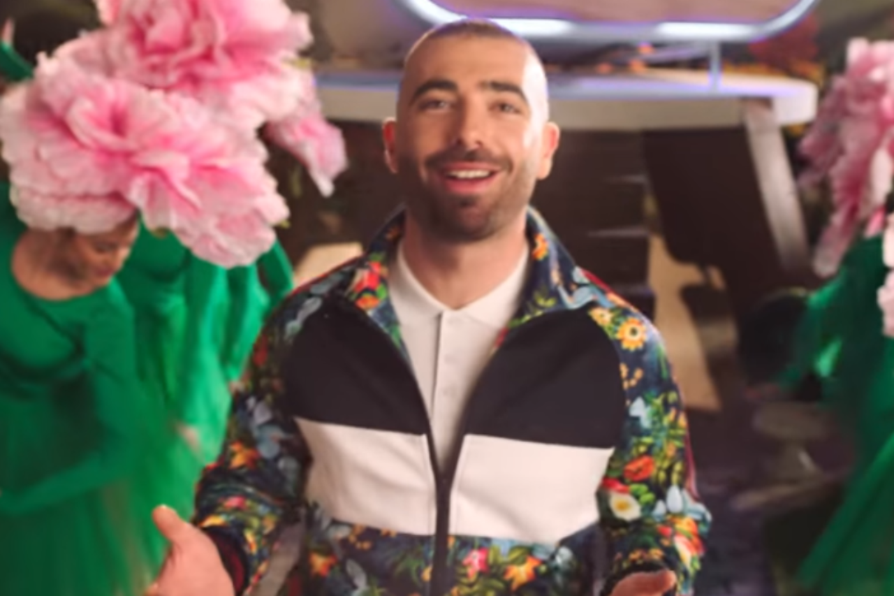 עומר אדם לובש את החליפה הפרחונית // צילום: מתוך הפרסומת של בזק