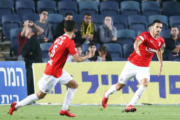 חן עזרא חוגג את היתרון של בית"ר ירושלים // דני מרון