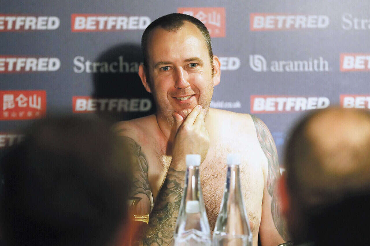 אלוף העולם הטרי בסנוקר, מארק וויליאמס, עמד בהבטחתו מהשנה שעברה והתייצב עירום למסיבת העיתונאים שאחרי הזכייה, כשרק מגבת מכסה את אזור חלציו - וגם אותה פשט כשהתיישב מאחורי השולחן שעליו הונחו המיקרופונים. "זה מרגיש מעט מוזר", הודה בפני הכתבים שישבו מולו.