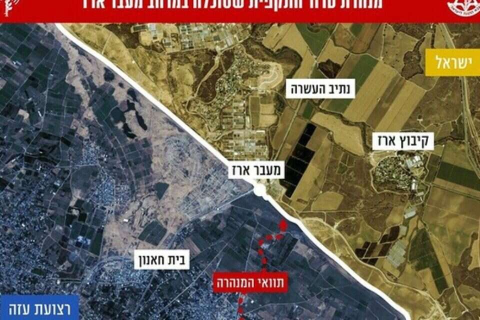 בצה"ל מוסרים כי את תוואי המנהרה ניטרלו מטוסי חיל האוויר. מדובר במנהרה שאותרה בשלבי חפירה בפרימטר הביטחוני, מטרים ספורים משטח ישראל, ויועדה לחצות את הגבול ולהגיע בסמוך למעבר ארז וליישובים בעוטף.