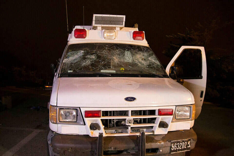 משהכביש הדו נתיבי נחסם, עשה נהג האמבולנס ניסיון אחרון לעקוף את המחסום משמאל, כשהוא משתדל לא לפגוע בחומה האנושית, אך שריף התקרב לכיוונו, נפגע ונפל על הכביש, באופן שגרם לאמבולנס לעצור. לאחר מכן החל ניסיון אלים להוציא פצועים סורים מהאמבולנס ולפגוע בהם.