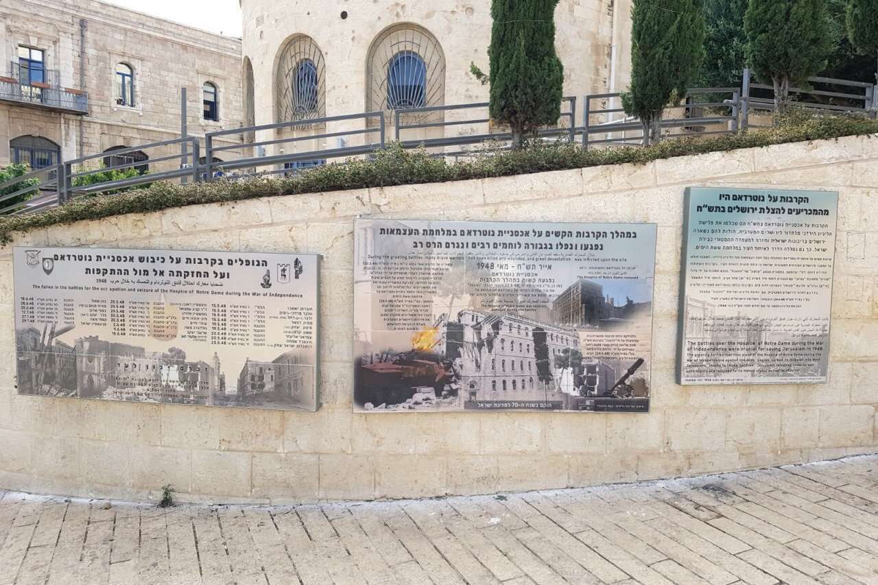 בעוד כעשרה ימים יוסר הלוט מעל שלוש לוחות הנצחה שכבר נקבעו בגב בניין העירייה הישן מול חומות העיר העתיקה, בסמוך למנזר נוטרדאם, שם בלמו לוחמי הגנה ונערי גדנ"ע את הסתערות הלגיון הירדני על ירושלים המערבית. על הלוח הראשון נחקקו שמות 23 הנופלים, הלוח השני מביא צילומים מנוטרדאם ההרוס, לצד נוטרדאם המשוקם כיום, והשלישי מתאר בקצרה כיצד הצילו מגיני המתחם את ירושלים היהודית וכיצד אלמלא הם, מדינת ישראל הייתה עלולה לקום ללא ירושלים. בהמשך אמור להתווסף גם מסבירן ומסך מגע אור קולי שיעניקו רקע היסטורי ומידע נוסף על שהתרחש במקום לפני כשבעים שנה.