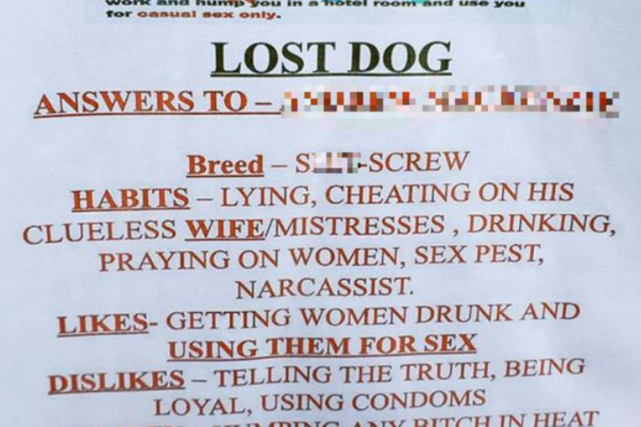 נקמה בבעל הבוגדני שהלכה רחוק מדי או צעד נואש של מאהבת? הרשתות החברתיות בסקוטלנד סוערות סביב שאלה אחת. מי תלה את מודעות הנאצה ברחובות פיטלוצ'רי בהן מדומה הבעל לכלב שנוהג לשכר נשים במטרה לקיים איתן יחסי מין?