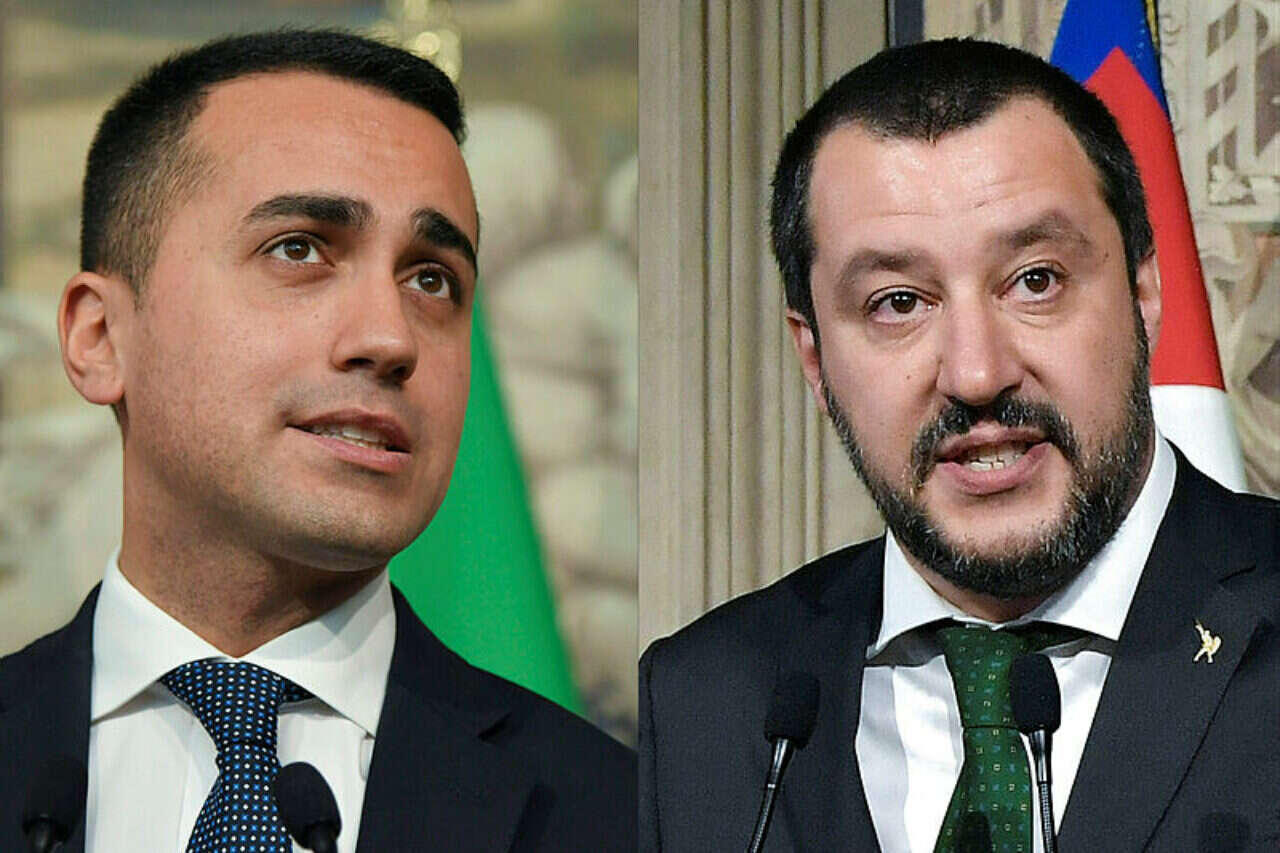 מנהיג "חמישה כוכבים" סיבך את "ליגה". לואיג'י די מאיו ומתאו סאלביני // צילום: AFP