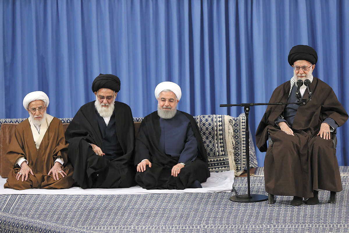 ההפגנות העממיות באיראן התחדשו. חמינאי נואם כשרוחאני לצידו // צילום: אי.אף.פי // ההפגנות העממיות באיראן התחדשו. חמינאי נואם כשרוחאני לצידו