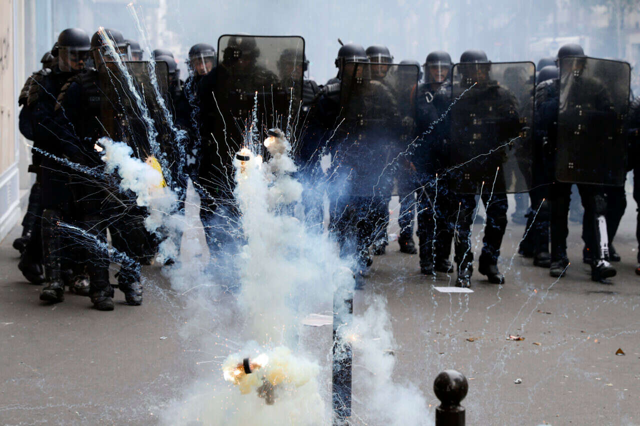 שוטרים מפזרים מפגינים בפריז // צילום: איי.פי // שוטרים מפזרים מפגינים בפריז // צילום: איי.פי