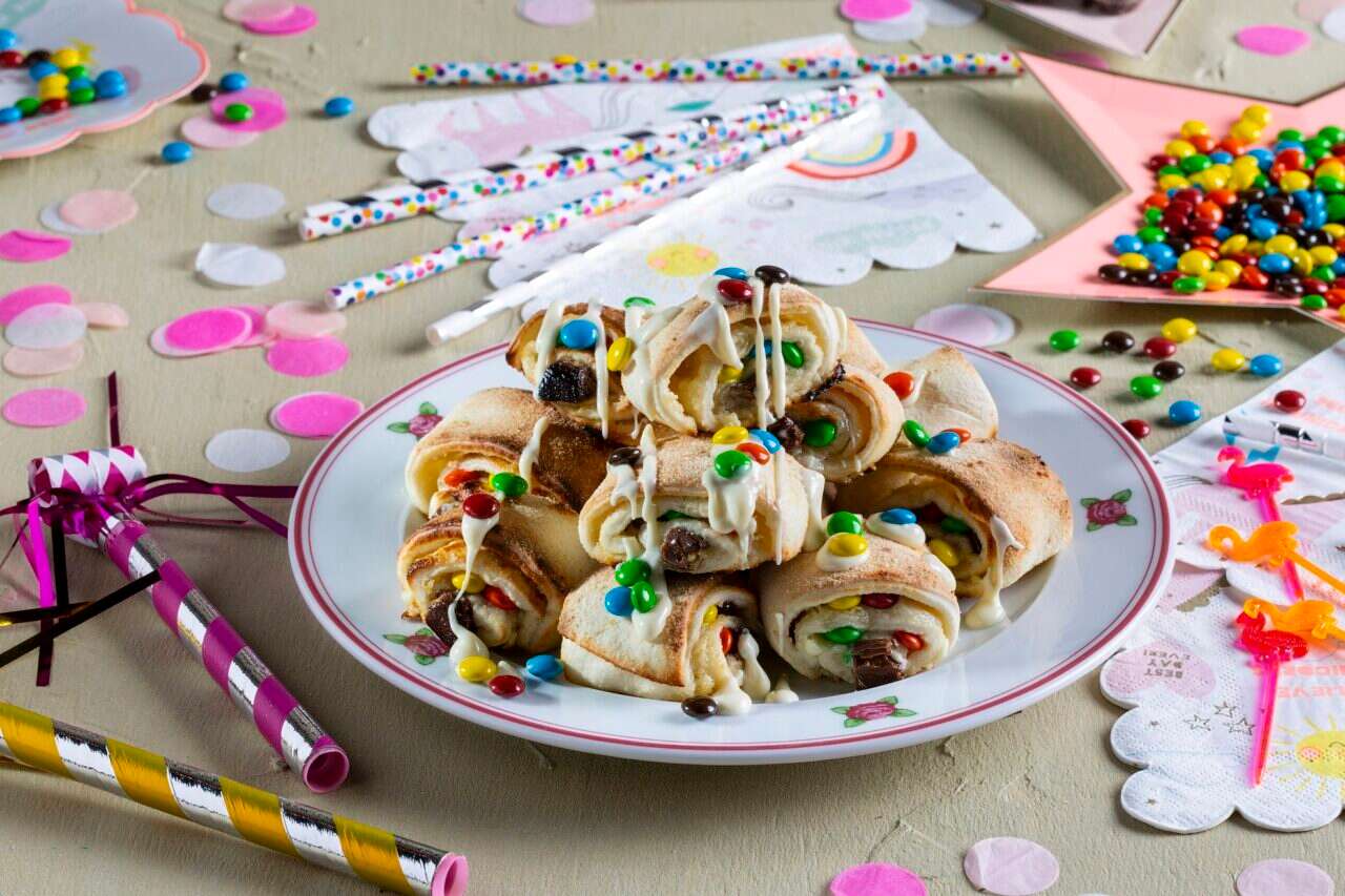 רוזלך סוכריות צבעוניות- קרם שוקולד חלב וקרם שוקולד לבן עם הרבה סוכריות צבעוניות – מנה קלאסית לילדים ונוער. זה טעים, מאוד מאוד מתוק ונראה ממש טוב על הצלחת.