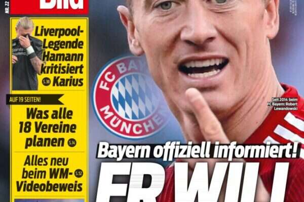 רוברט לבנדובסקי רוצה לעזוב את באיירן מינכן, כך מדווחים הבוקר (רביעי) ב"בילד" הגרמני. ע"פ הפרסום העכשווי, סוכנו הישראלי של החלוץ הפולני, פיני זהבי הודיע לראשי אלופת גרמניה כי לבנדובסקי מיצה את עצמו באלינאץ ארנה.