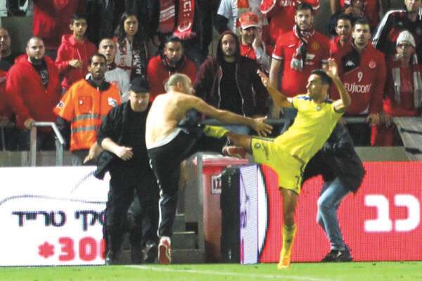 צילום: עמי שומן // ערן זהבי מתעמת עם אוהד הפועל ת"א בשנת 2014