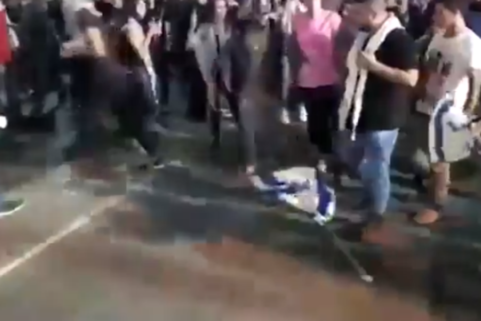 דו קיום? ערבים שהפגינו במהלך סוף השבוע בחיפה תועדו משחיתים את דגל ישראל. בחיפה ובוואדי ערה נערכו בסוף השבוע עצרות הזדהות עם תושבי עזה תוך קריאה להסרת המצור מעל הרצועה.