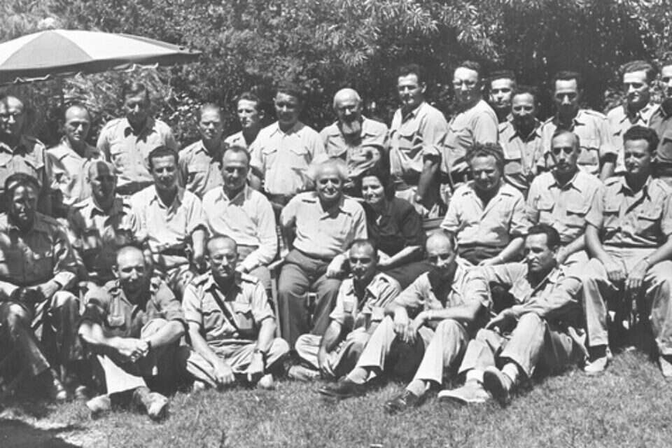 חודש וחצי לאחר קום המדינה, כ' בסיוון תש"ח (27 ביוני 1948) ראש הממשלה הראשון ושר הבטחון, דוד בן גוריון, את ראשי האגפים במטה הכללי והמפקדים הראשיים בצה"ל. השבועה ההיסטורית, התקיימה ב"גבעה" ברמת גן, בה ישב המטה הכללי הראשון.