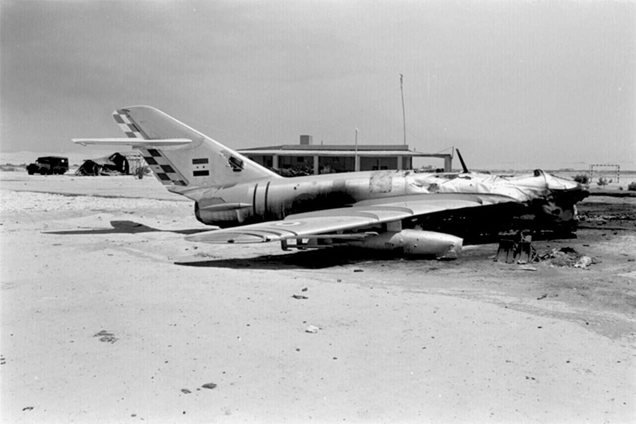 מטוסי מיג 21 מצרים שהושמדו בעודם חונים על הקרקע // צילום: ארכיון צה"ל