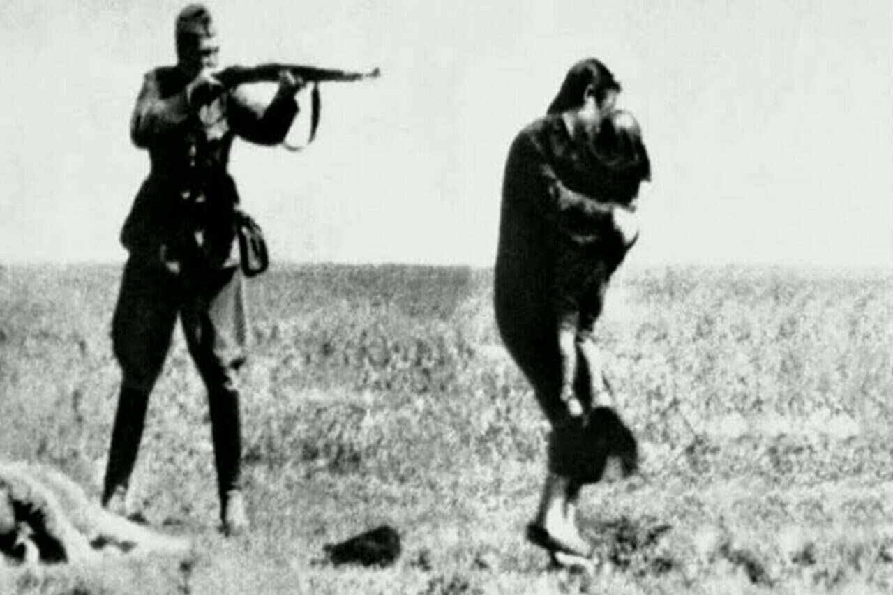 איש "עוצבות המבצע" מכוון את נשקו לעבר יהודיה בברית המועצות // איש "עוצבות המבצע" מכוון את נשקו לעבר יהודיה בברית המועצות