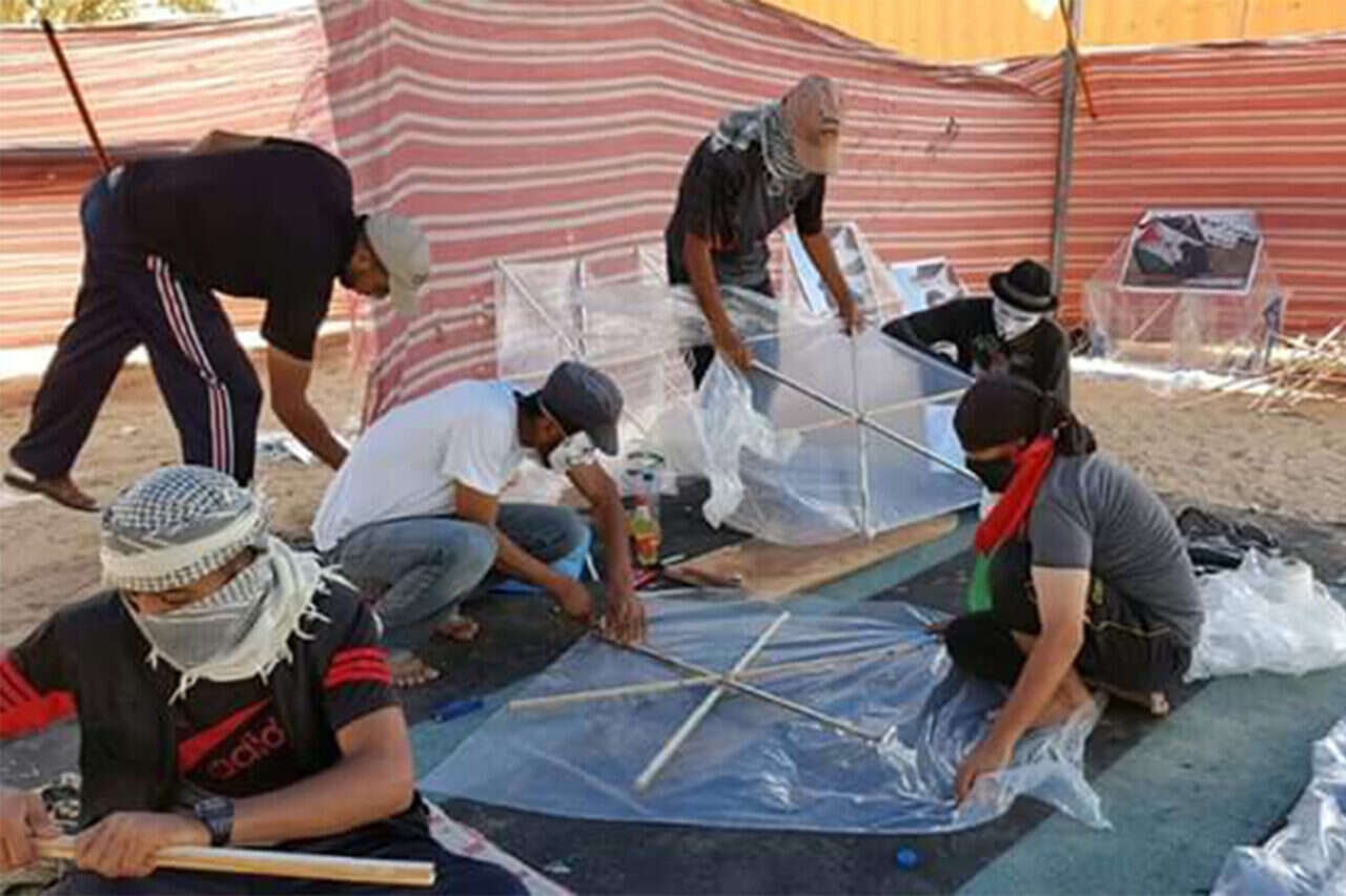 עפיפונים עומדים בשורה - מוכנים לשרוף את השדות בעוטף עזה