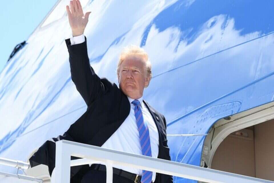הנשיא טראמפ עם נחיתתו בסינגפור // צילום: EPA