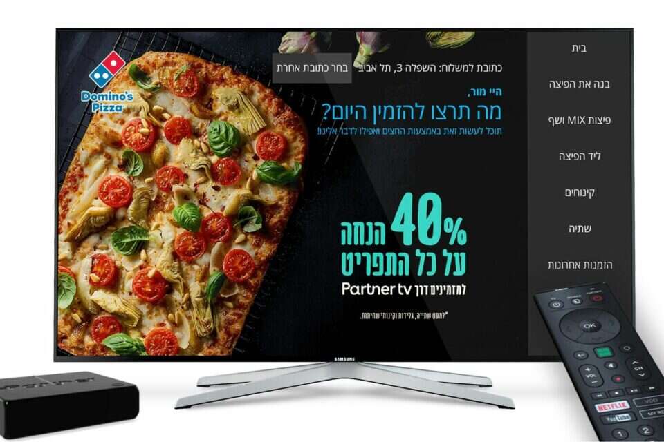 לקראת המונדיאל ברוסיה השיקה פרטנר TV פלטפורמת מסחר בטלוויזיה המבוססת על אפליקציית הסמארטפון המצליחה של דומינו'ס פיצה בישראל, בשילוב עם פיתוחים נוספים ייעודיים לממיר הטלוויזיה של פרטנר. האפליקציה זמינה להורדה לממירי פרטנר כבר מהיום (שלישי) ולקוחות פרטנר TV שיזמינו באמצעות הממיר יוכלו ליהנות מהנחה של 40 אחוזים על התפריט (למעט שתייה, גלידות, קינוחים נבחרים ומעטפות סופרגול מונדיאל). אין הגבלה על מספר ההזמנות שיבוצעו בתקופת המבצע.