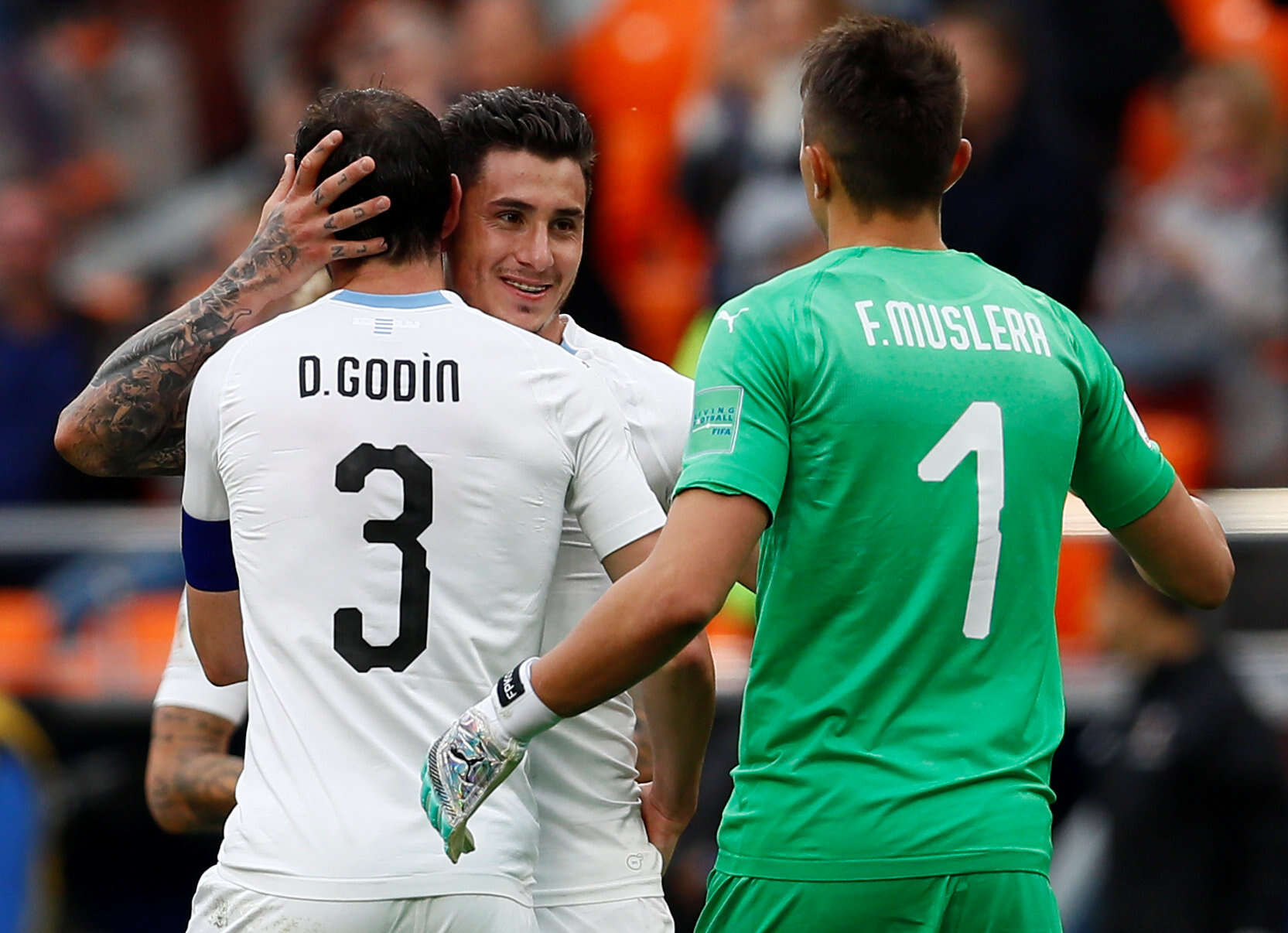 אורוגוואי: פרננדו מוסלרה, גיז'רמו וארלה, חוסה מריה חימנס, דייגו גודין, מרטין קאסרס, נהיתן נאנדז, מתיאס וסינו, רודריגו בנטנקור, ג'ורג'יאן ארסקאטה, אדינסון קבאני, לואיס סוארס.