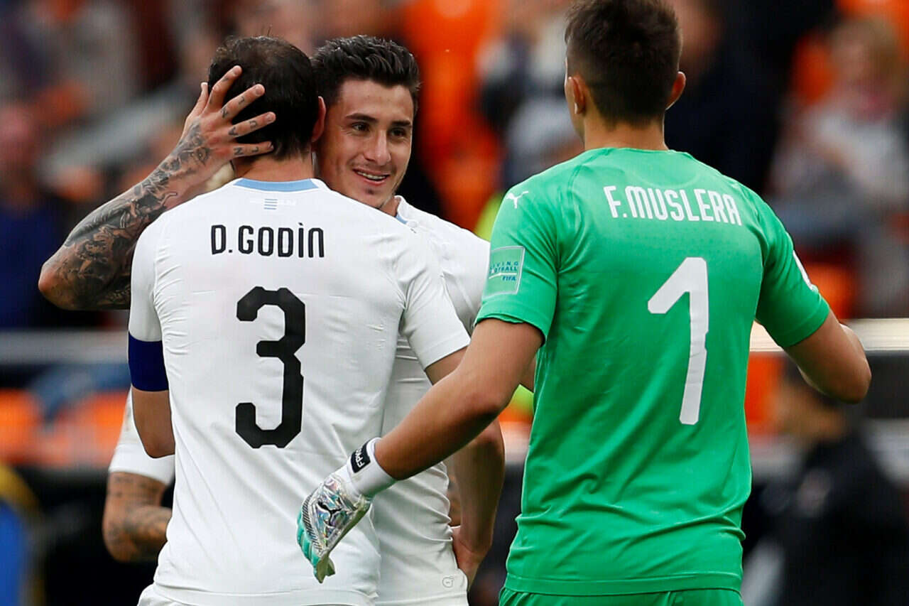 אורוגוואי: פרננדו מוסלרה, גיז'רמו וארלה, חוסה מריה חימנס, דייגו גודין, מרטין קאסרס, נהיתן נאנדז, מתיאס וסינו, רודריגו בנטנקור, ג'ורג'יאן ארסקאטה, אדינסון קבאני, לואיס סוארס.
