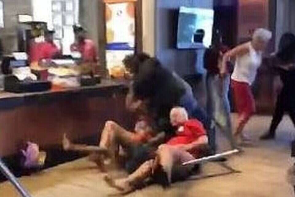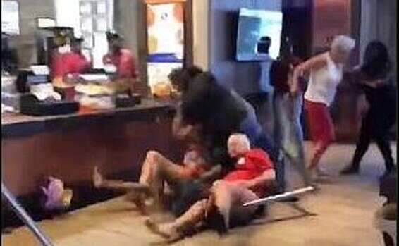 הסרטון מסתיים אחרי שבעלה של האישה מוטח באחד מקירות המסעדה, אך ניתן להבין כי העימות האלים במקום עדיין לא הסתיים. עם זאת, משטרת אטונוויל, שהוזעקה למקום ככל הנראה על ידי בעלי המסעדה, לא עצרה אף אחד מהמעורבים בקטטה אלא רק הרחיקה אותם מהמקום.