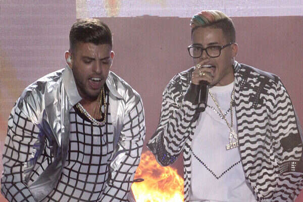ובשעה 20:07 זה קורה. מסכים סוף סוף זזים, תמרות אש ותאורה מחשמלת מבטלים כל אפשרות למריחה נוספת, והשניים פורצים לבמה בלי הרבה בוויזה, אבל עם מלא רקדנים בתלבושות סטייל ערוץ הילדים.