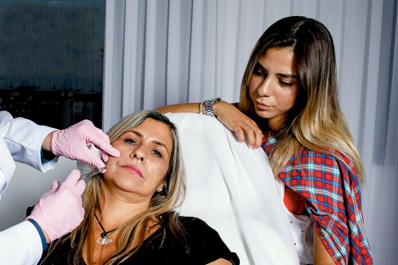 שעת צהריים, ולמרפאה בתל אביב מגיעות מיתר ושירלי ניסני. זאת כבר הפעם השלישית שמיתר בת ה־20 מבקרת כאן ומתייצבת להזרקת חומצה היאלורונית למילוי השפתיים. אמה שירלי (48) מתלווה אליה, והמקום המעוצב והנקי לא זר גם לאם. היא כבר ביקרה כאן כשהזריקה בוטוקס ליישור הקמט הסורר שנמצא במצח בין העיניים וגם באלו שבצידי הפה.