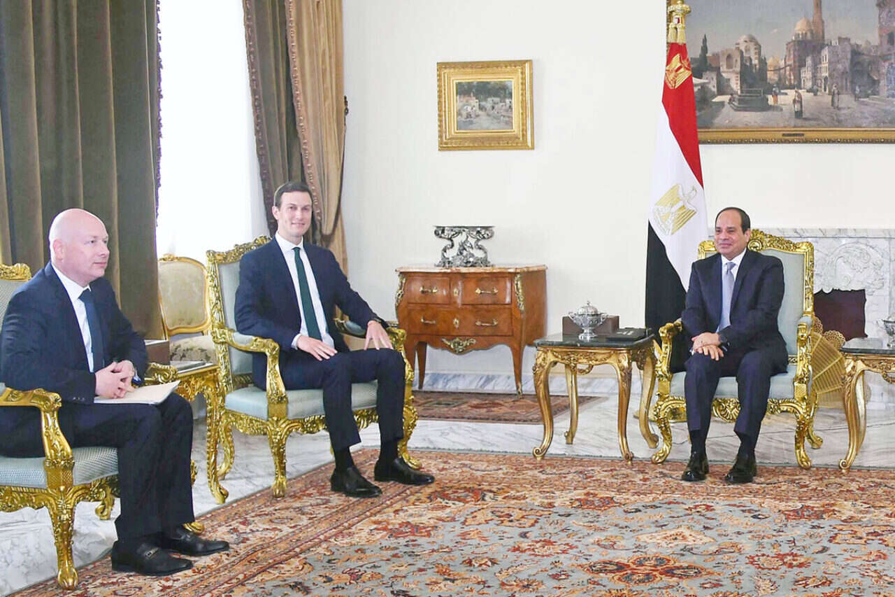 אחרי שבימים האחרונים נפגשו עם המלך עבדאללה בירדן ועם יורש העצר הסעודי מוחמד בן סלמאן בערב הסעודית, נפגשו אתמול השניים גם עם הנשיא המצרי עבד אל־פתאח א־סיסי. בהודעה שפרסם הבית הלבן נאמר כי השניים שוחחו על "שיתוף הפעולה הגובר בין ארה"ב למצרים ועל הצורך לסייע במתן הקלה הומניטרית בעזה, ועל המאמצים של ממשל טראמפ להשגת שלום בין הישראלים לפלשתינים". מסעם של השניים באזור צפוי לכלול גם את קטאר.